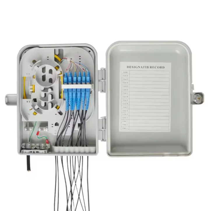 This 12 Port Fiber Termination Box is designed for 12 sc fiber pigtails splicing with drop cable, Easy to install and coming with locks for protection.
